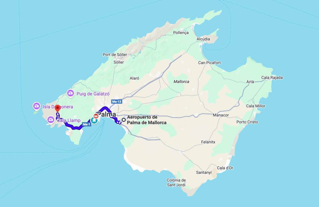 Andratx está situado al suroeste de Mallorca, rodeado por montañas y cerca del mar. El pueblo se encuentra a unos 30 kilómetros de la capital, Palma. Andratx ofrece una excelente ubicación para quienes desean escapar de los destinos más turísticos y disfrutar de un ambiente relajado, perfecto para un paseo tranquilo.